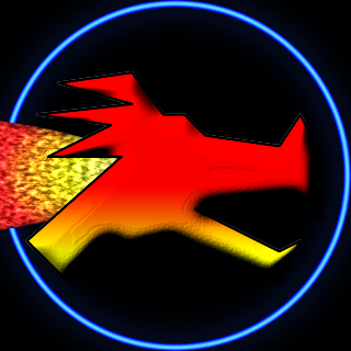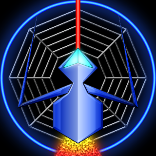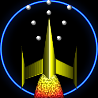 All of the color images below are not what ships really look like in XPilot; they are merely an artistic rendering of those ships. (The artist, of course, is me.) They were generated in several steps from the original shipshape file, which was converted to PostScript using the ship2ps program, then to PDF using GhostScript ps2pdf. This was then imported into Inkscape (an open-source vector graphics editor), where each individual ship was resized to its proper dimensions, inverted (for display on a dark background) and saved as individual SVG files. (Which are 31x31 px; but for the Ships by Insectoid pages, I scaled them to 53x53 px.) For the six ships displayed here, I enlarged them to a moderate size (around 80x80 px), and added the fiery exhaust and bright blue shield to bring the image size to 96x96 px. Custom gradients were applied, and so were other objects (like the backgrounds, bullets, etc.), followed by several of Inkscape's special graphics filters. Finally, they were exported to PNG images in several sizes. (I would have put the SVGs themselves on this page, but with all the gradients and filters, there's no guarantee they'd display correctly in all browsers—especially Internet Explorer, which does not support filters at all.)
